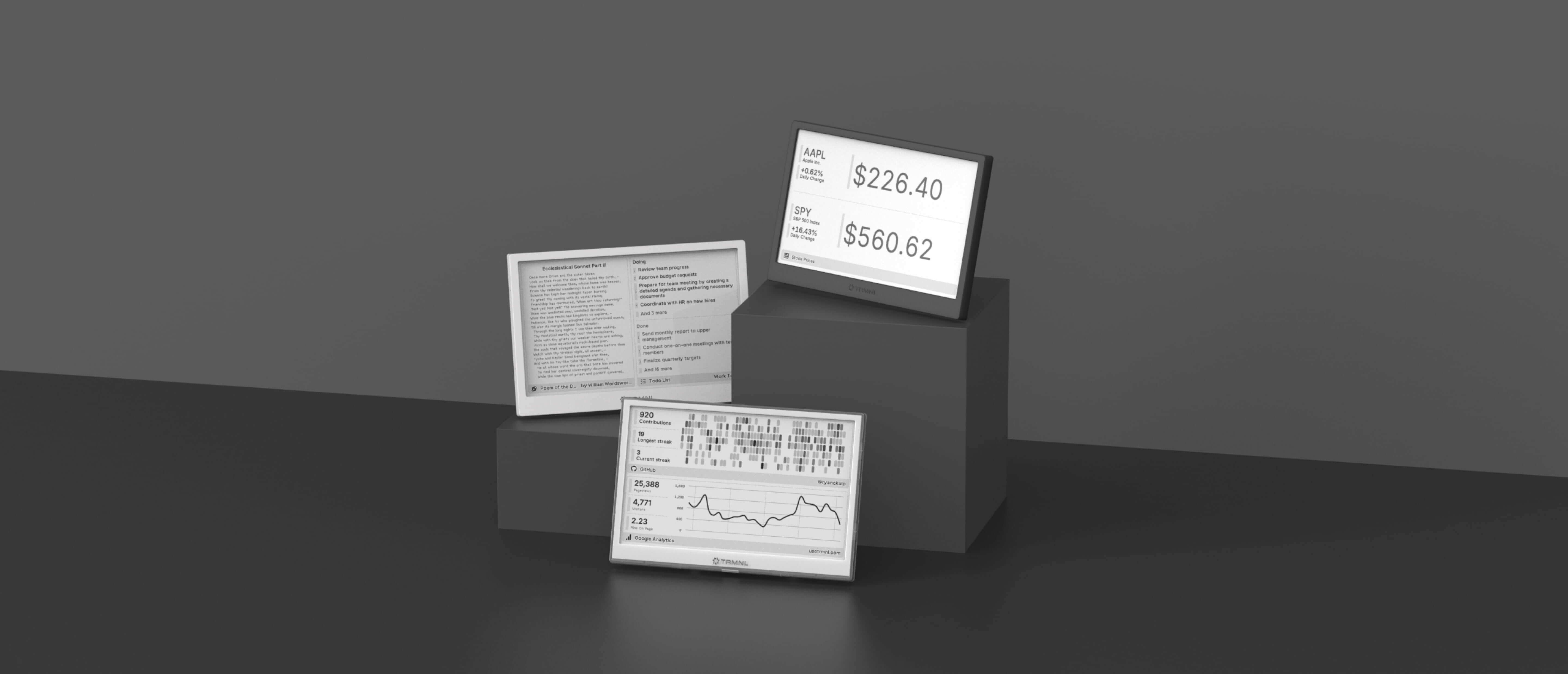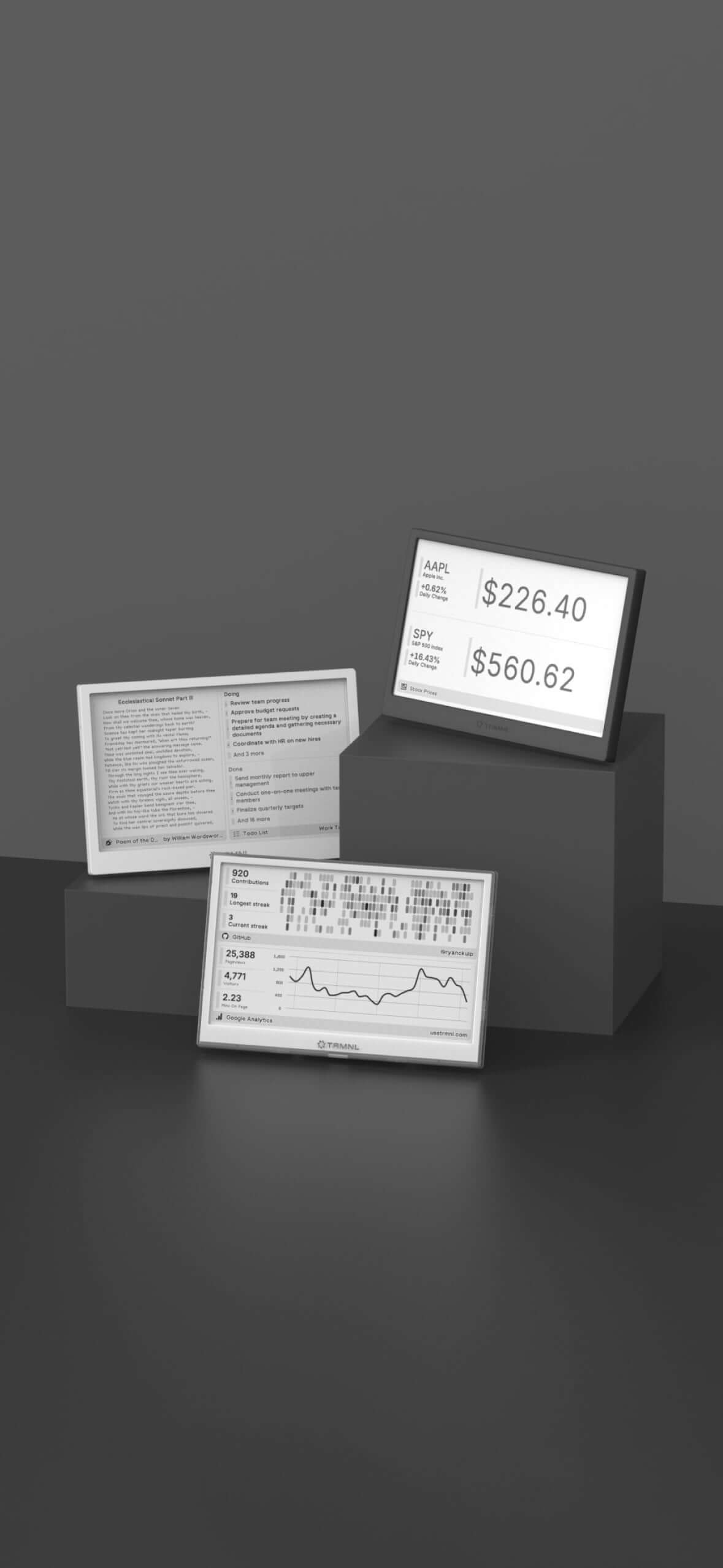 You don't want to maintain another device. TRMNL adds value without any fuss. It even puts itself to sleep.
