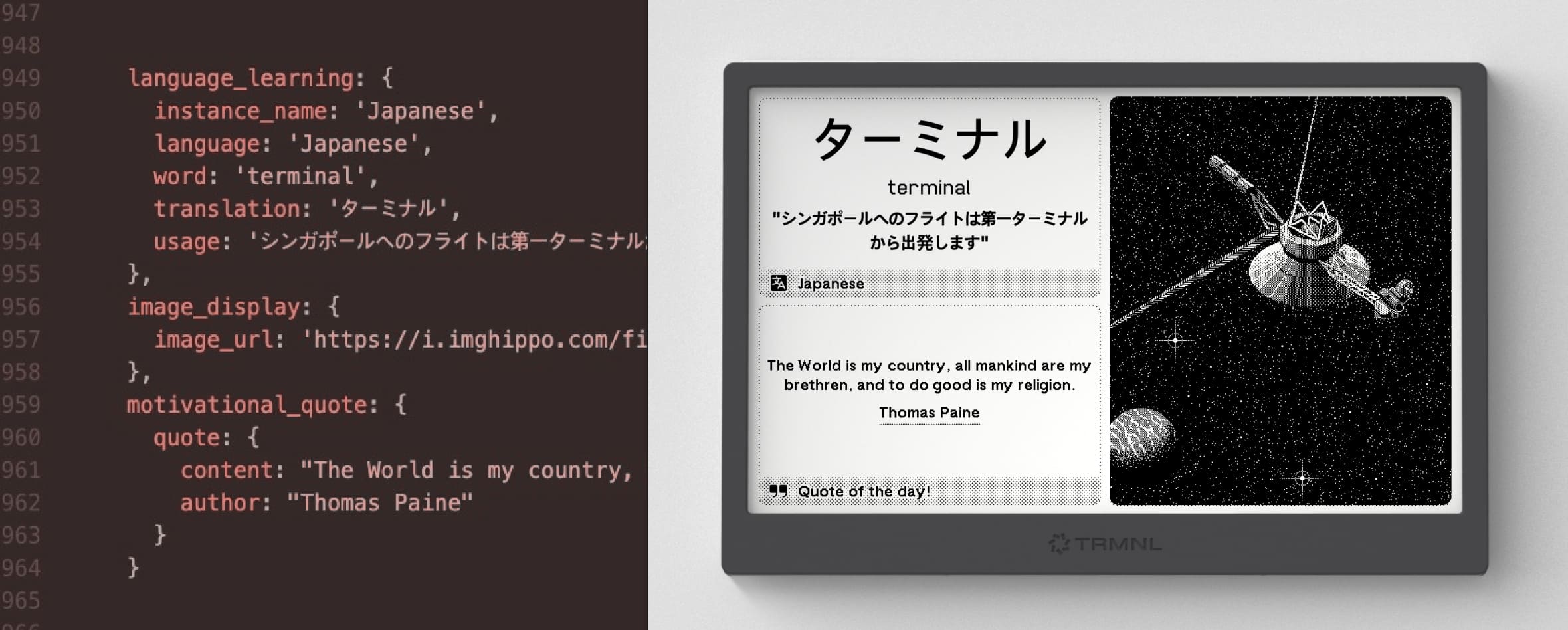 The trmnl is the prettiest device on my desk. It doesn't attract my attention, I don't look at it much, but every time I look at it, I feel happy. It's like a dose of relaxation.