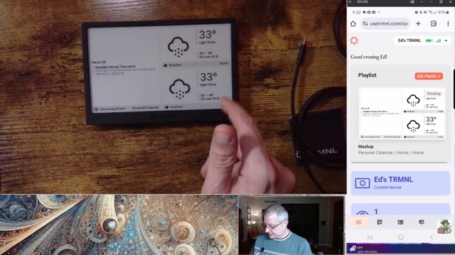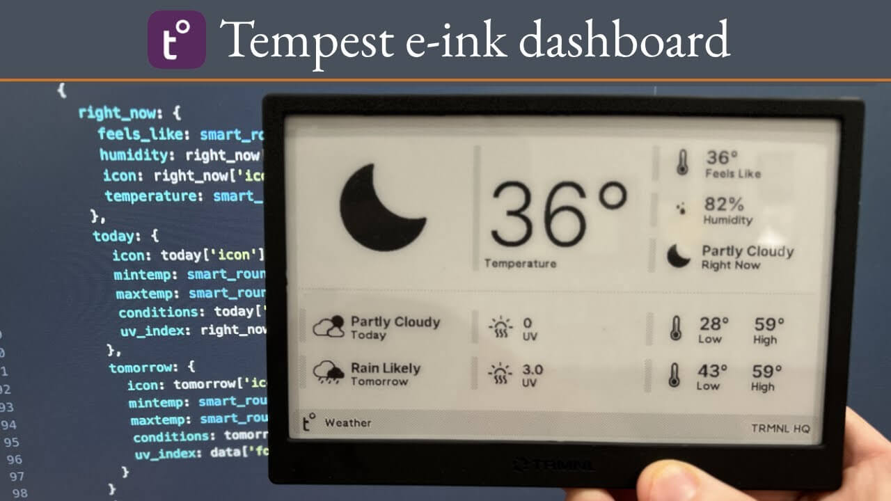 I had been on the hunt for an e-ink calendar - they were all prohibitively expensive, or exceedingly complex, or relied on some very fishy app connection. I mean I think I'm a pretty clever guy but I am not capable of the coding and programming needed for so many of the DIY options.Saw TRMNL. Bought TRMNL. It's perfect. Sits on my desk, tells me weather and my calendar, and updates only when it needs to.Despite what marketing tells us - we don't actually need every device to do every thing. TRMNL does what it says it will, does it well, and without extraneous nonsense. Perfect.