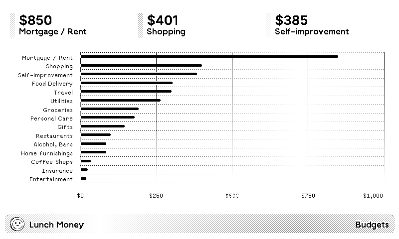 If "budgets" is selected, per-category spending will be scoped month to date.
